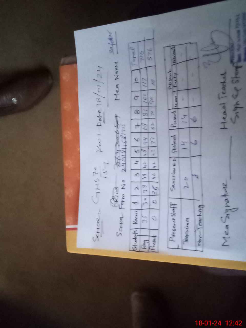 | Attendance Register | Head Teacher | MEA with School | Visit Proof |
