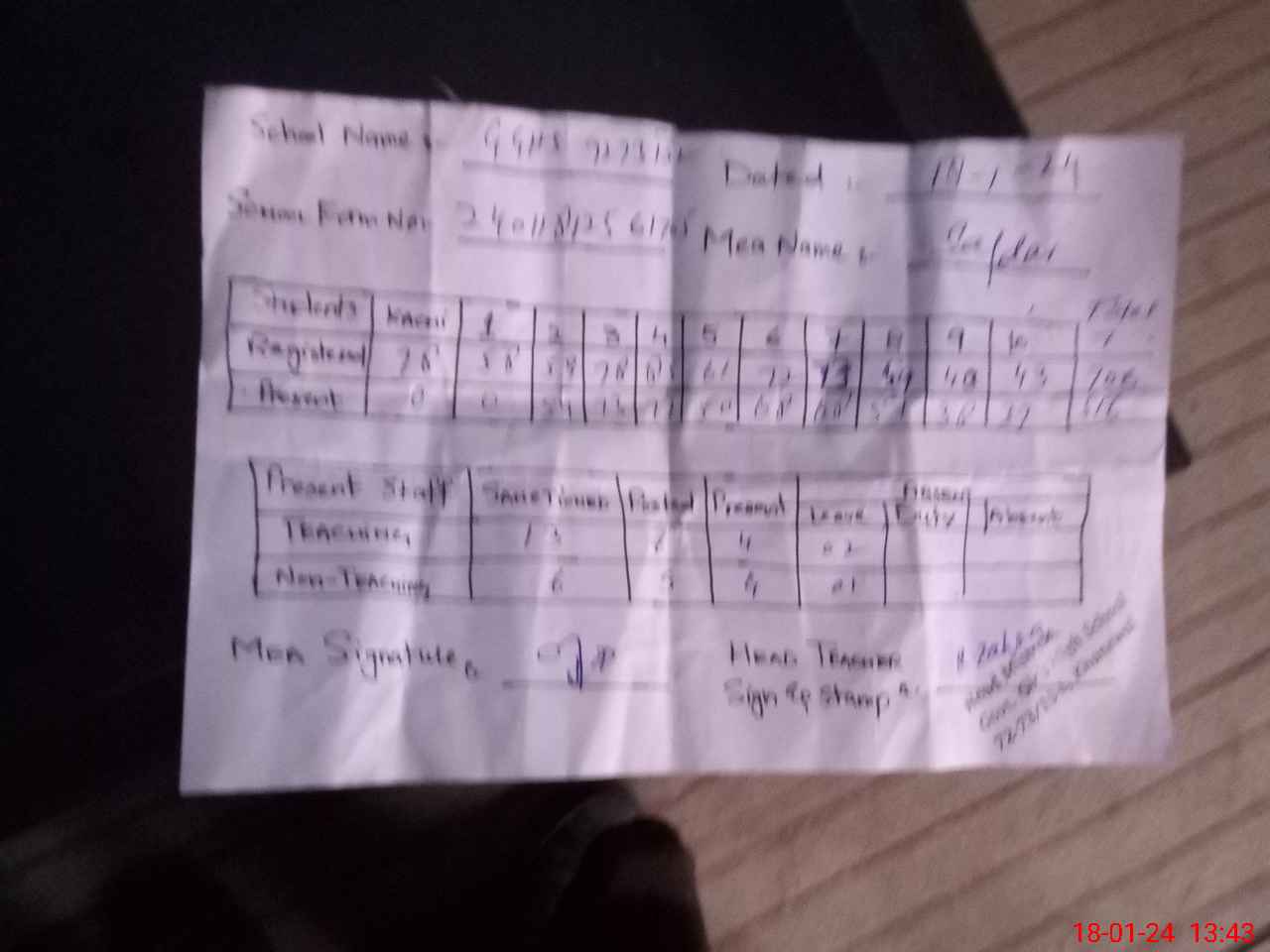 | Attendance Register | Head Teacher | MEA with School | Visit Proof |