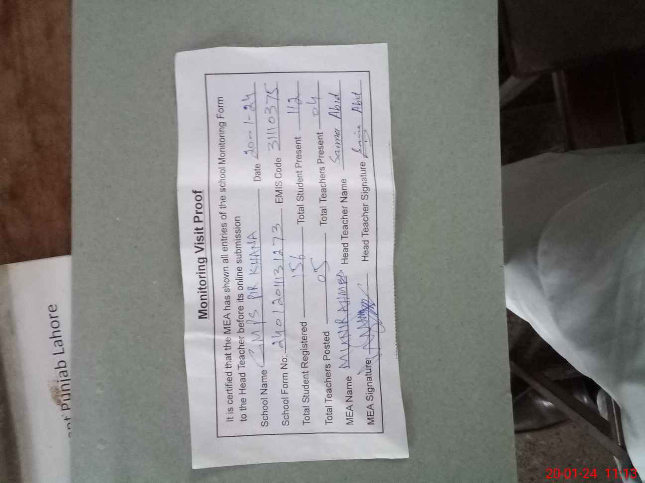 | EMIS Code: 31110375 | Name of School: GMPS PIR KHANA | |||
