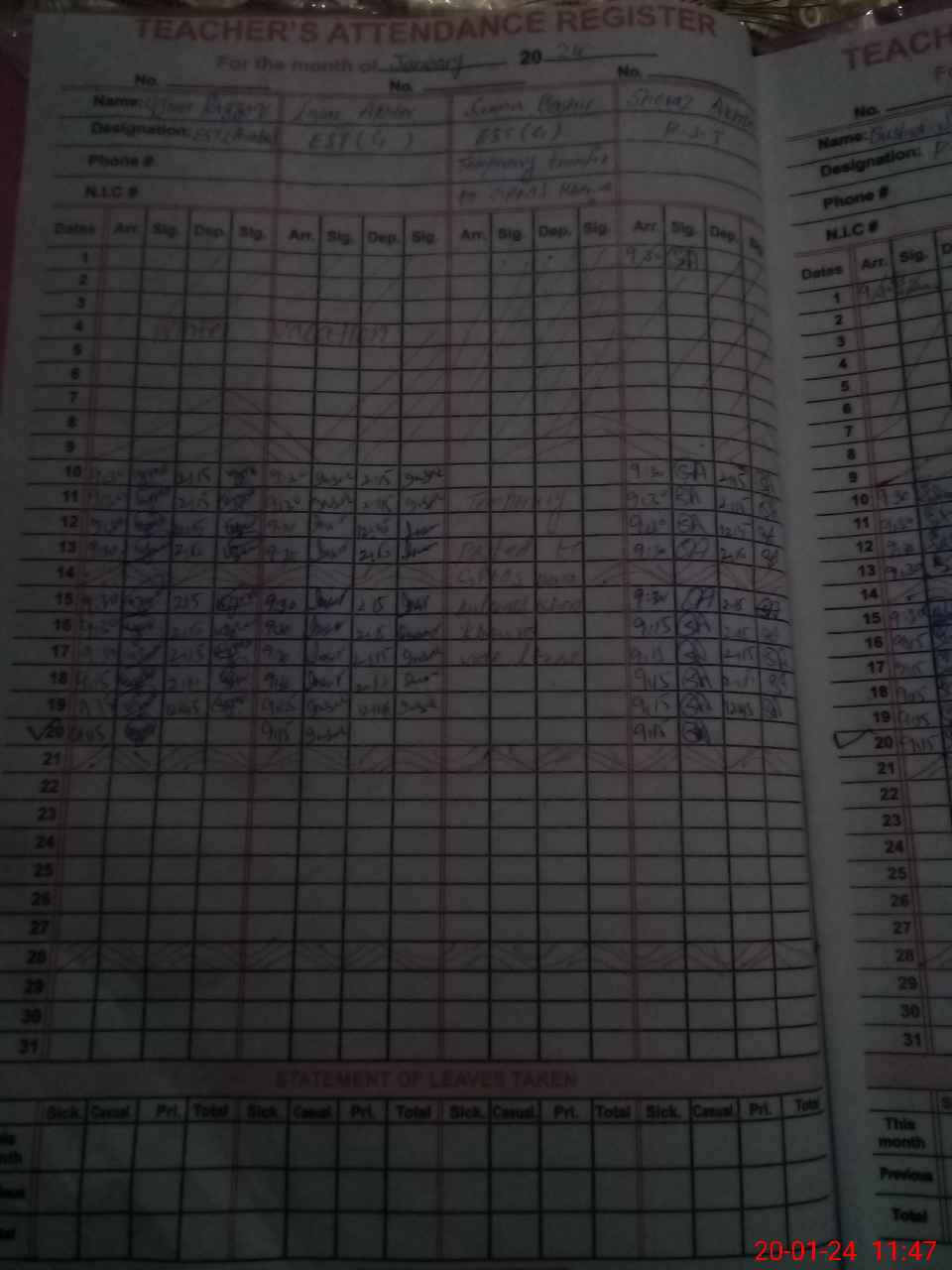 | CNIC | Full Name | Designation | R/C | Absence During Last Calender Month |