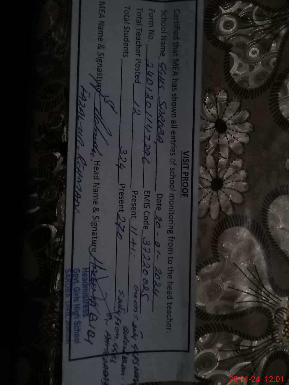 | EMIS Code: 37220025 | Name of School: GGHS SAROBA | |||