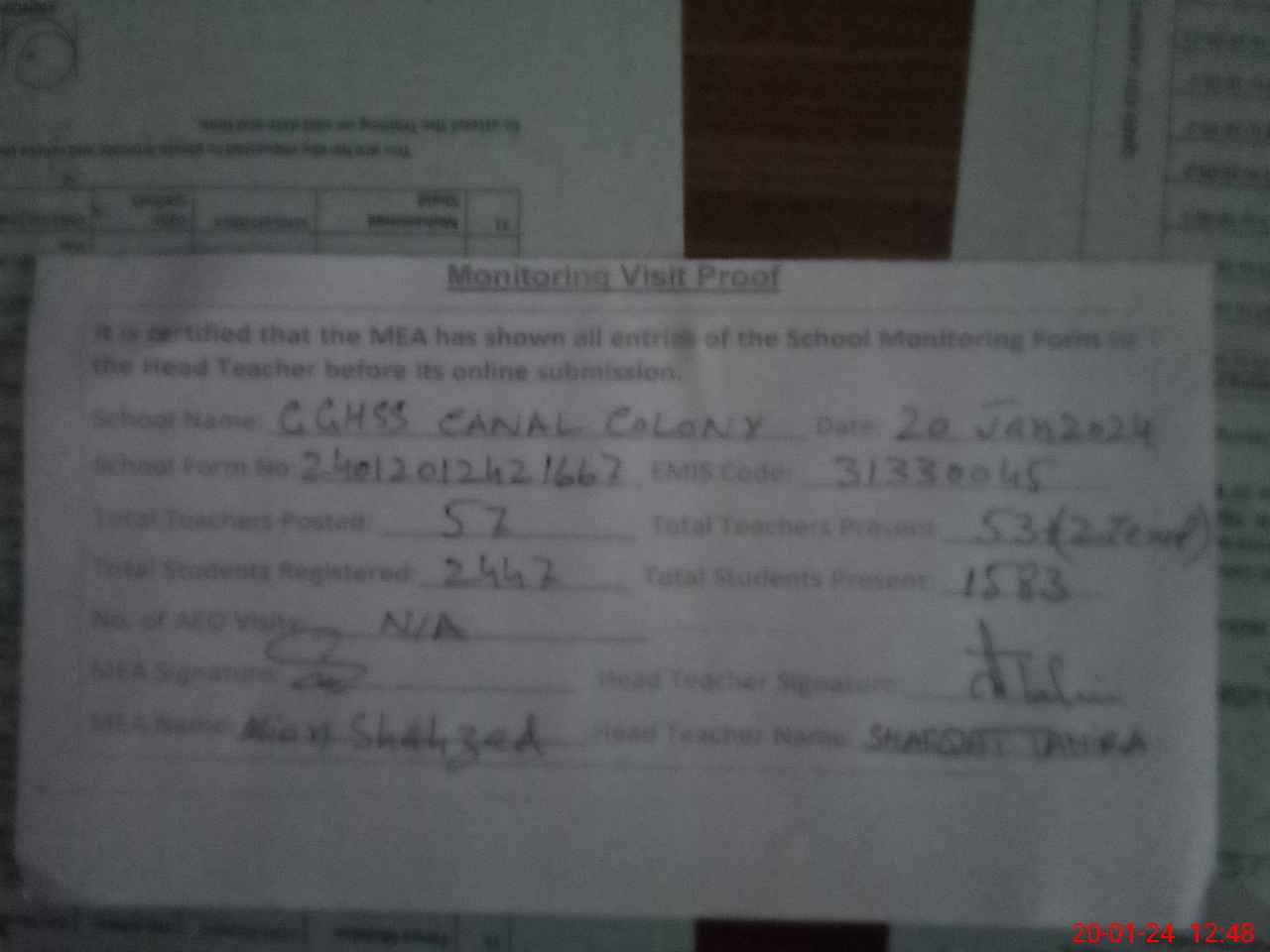 | EMIS Code: 31330045 | Name of School: GGHSS CANAL COLONY | |||