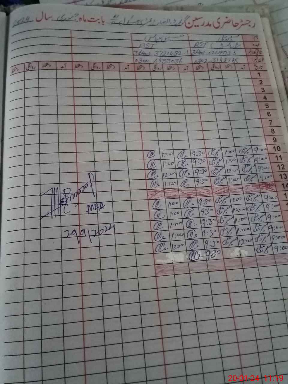 | Monitoring Date: 20-01-2024 | Start Time: 20-01-2024 11:04 AM | End Time: 20-01-2024 11:54 AM | Name of MEA: MU**** AS**** | |