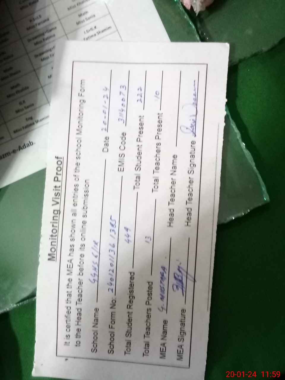 | EMIS Code: 31140073 | Name of School: GGHS CHAK NO 6/1-R | |||