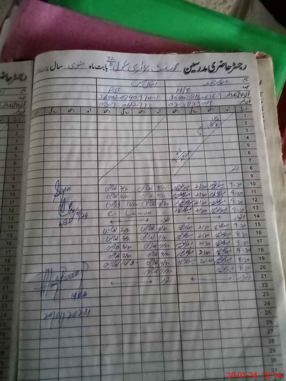 | Name: AB**** WA**** Designation: (School Headmaster's/Headmistress's) PST Phone/Cell Number: 03**** |