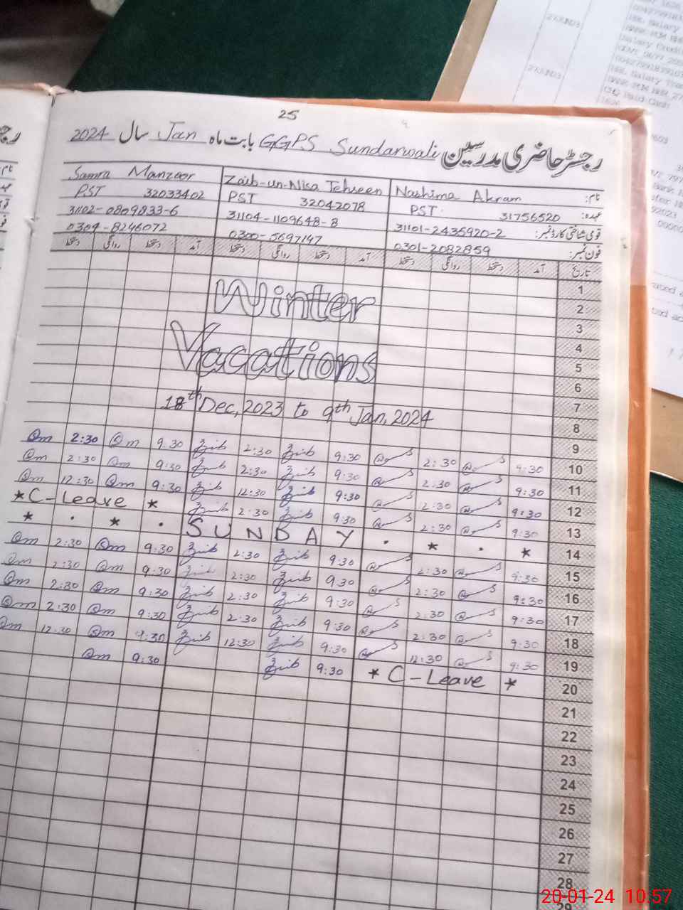 | CNIC | Full Name | Designation | R/C | Absence During Last Calender Month |