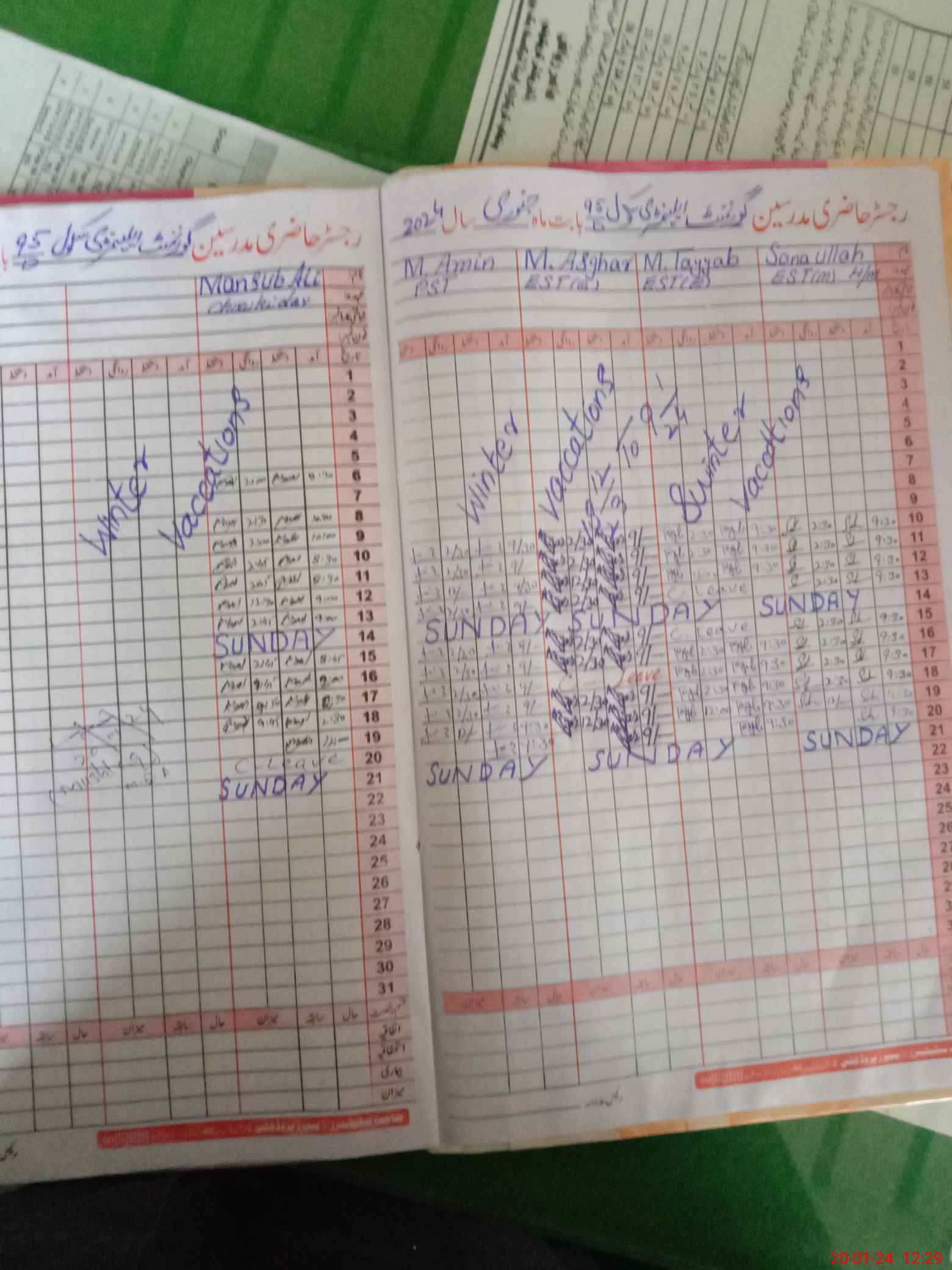 | CNIC | Full Name | Designation | R/C | Absence During Last Calender Month |