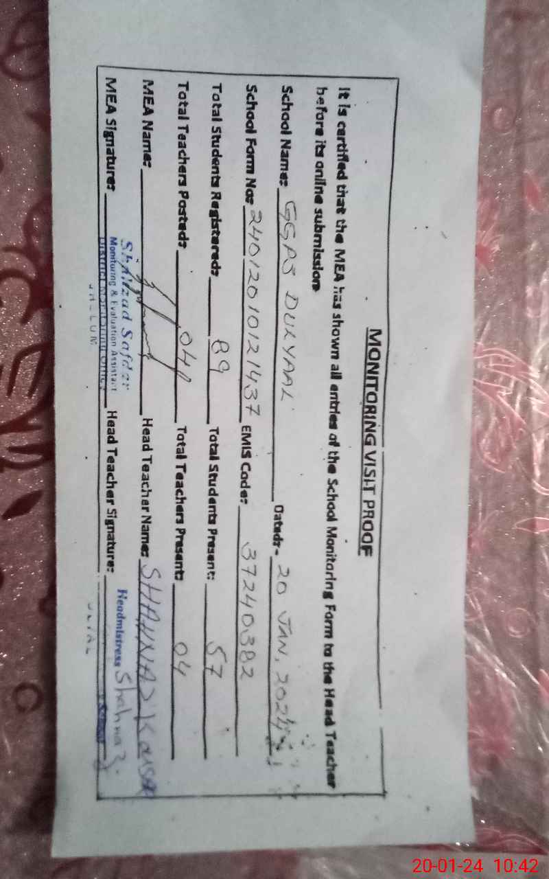 | EMIS Code: 37240382 | Name of School: GGPS DULYAAL | |||