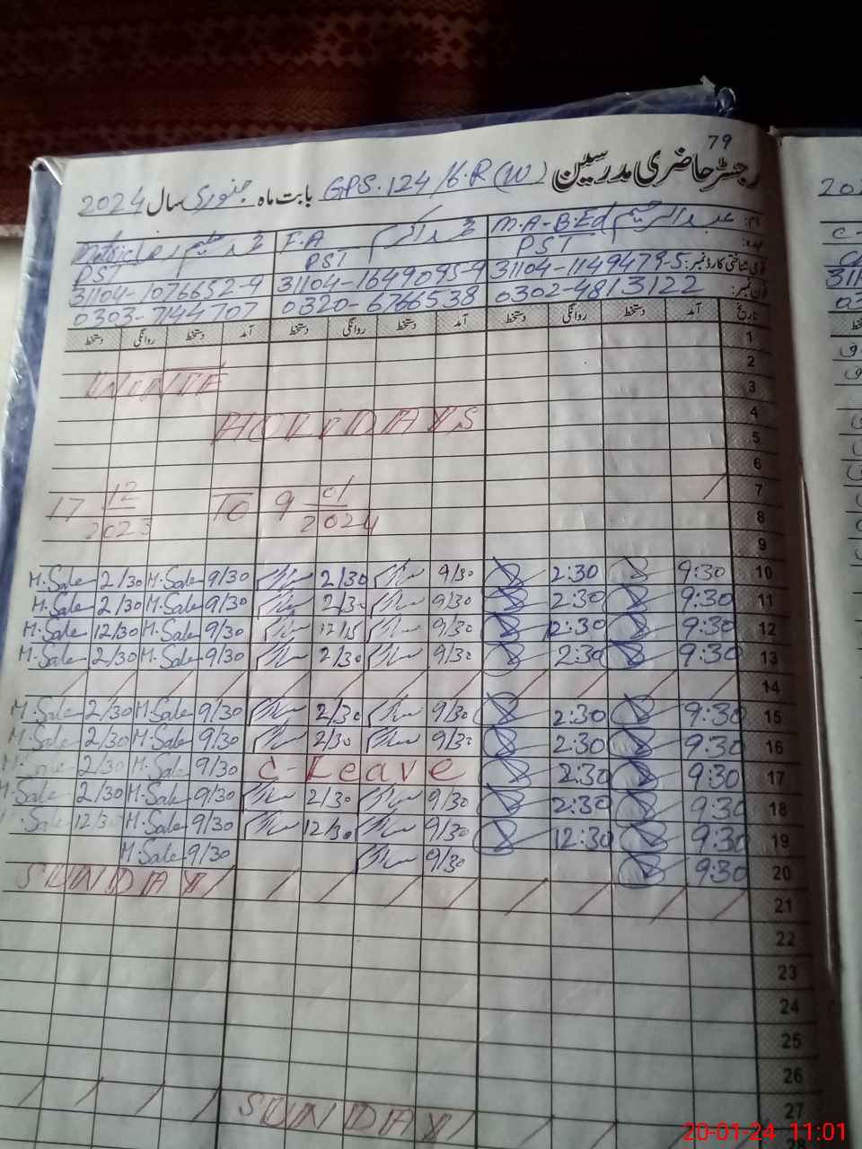 | CNIC | Full Name | Designation | R/C | Absence During Last Calender Month |