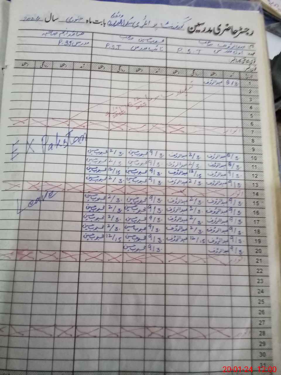 | CNIC | Full Name | Designation | R/C | Absence During Last Calender Month |