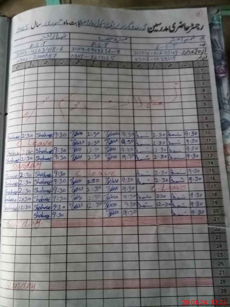 | 31**** | Sh**** Na**** | PST | Regular | 2 | 0 | 0 | 0 | 0 | 0 | 0 | 0 | 2 | Casual |