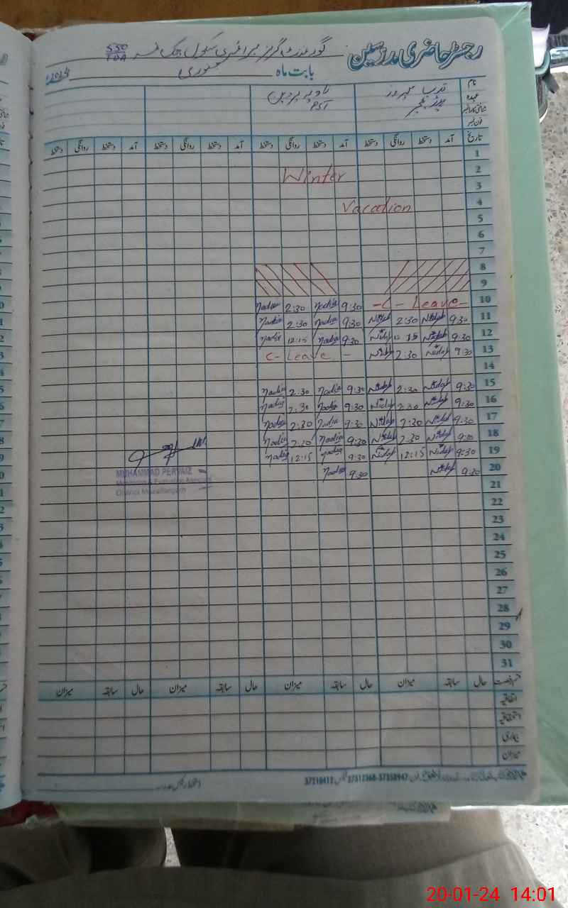 | CNIC | Full Name | Designation | R/C | Absence During Last Calender Month |