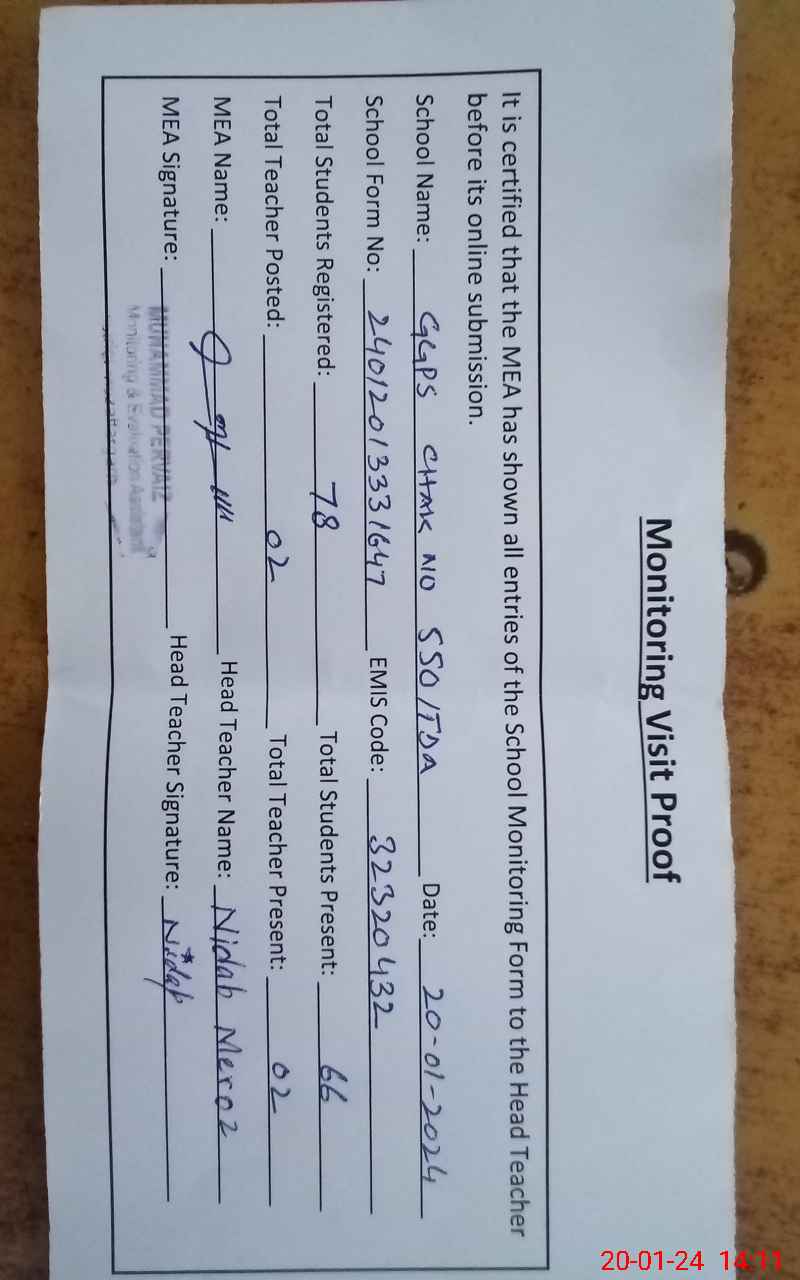 | EMIS Code: 32320432 | Name of School: GGPS CHAK NO. 550 TDA | |||