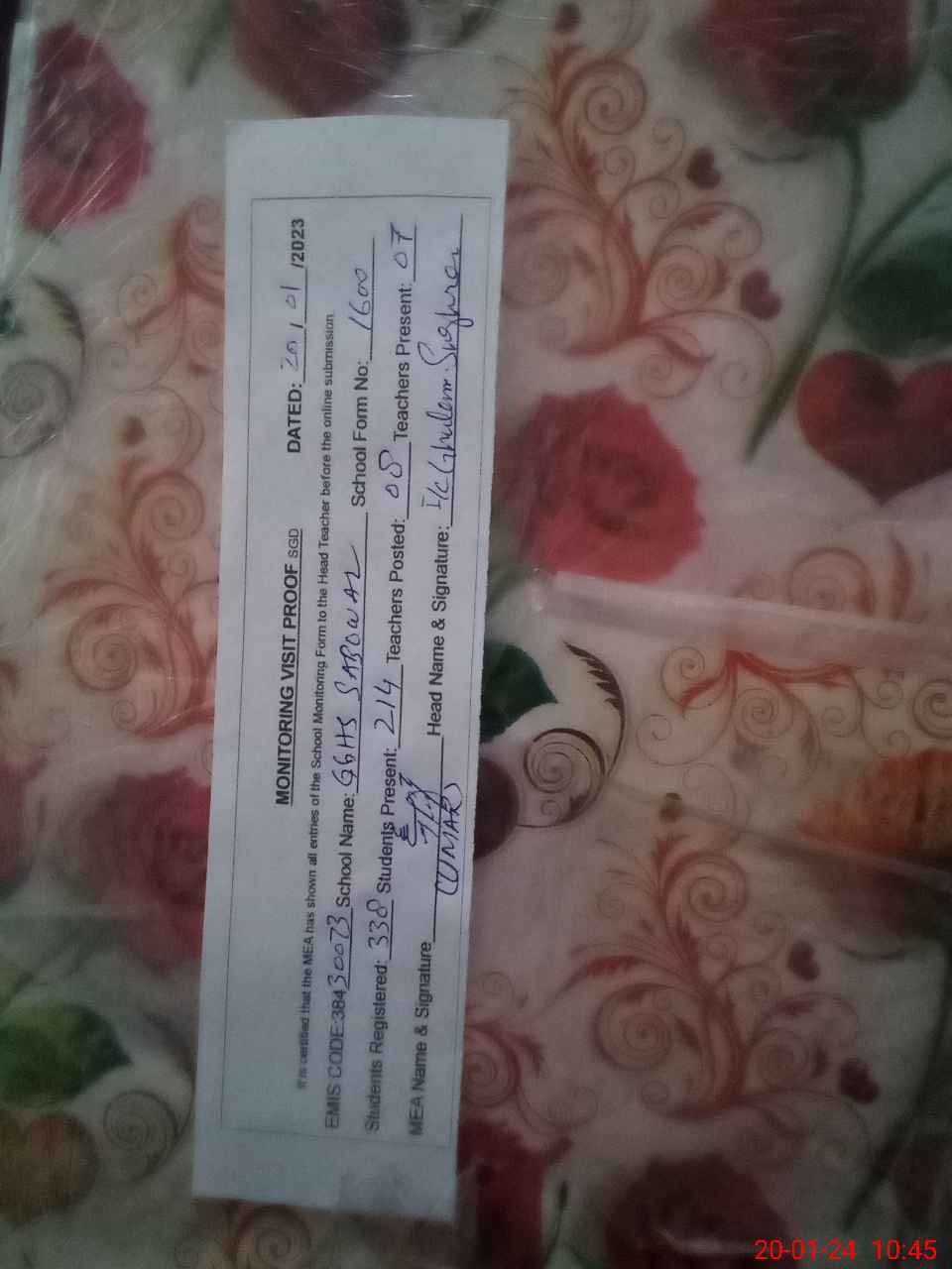 | Name: SA**** ZA**** Designation: (School Headmaster's/Headmistress's) SST Phone/Cell Number: 03**** |