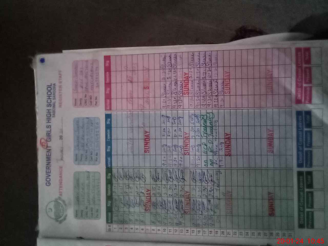 | CNIC | Full Name | Designation | R/C | Absence During Last Calender Month |