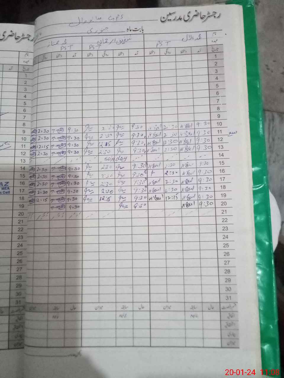 | CNIC | Full Name | Designation | R/C | Absence During Last Calender Month |