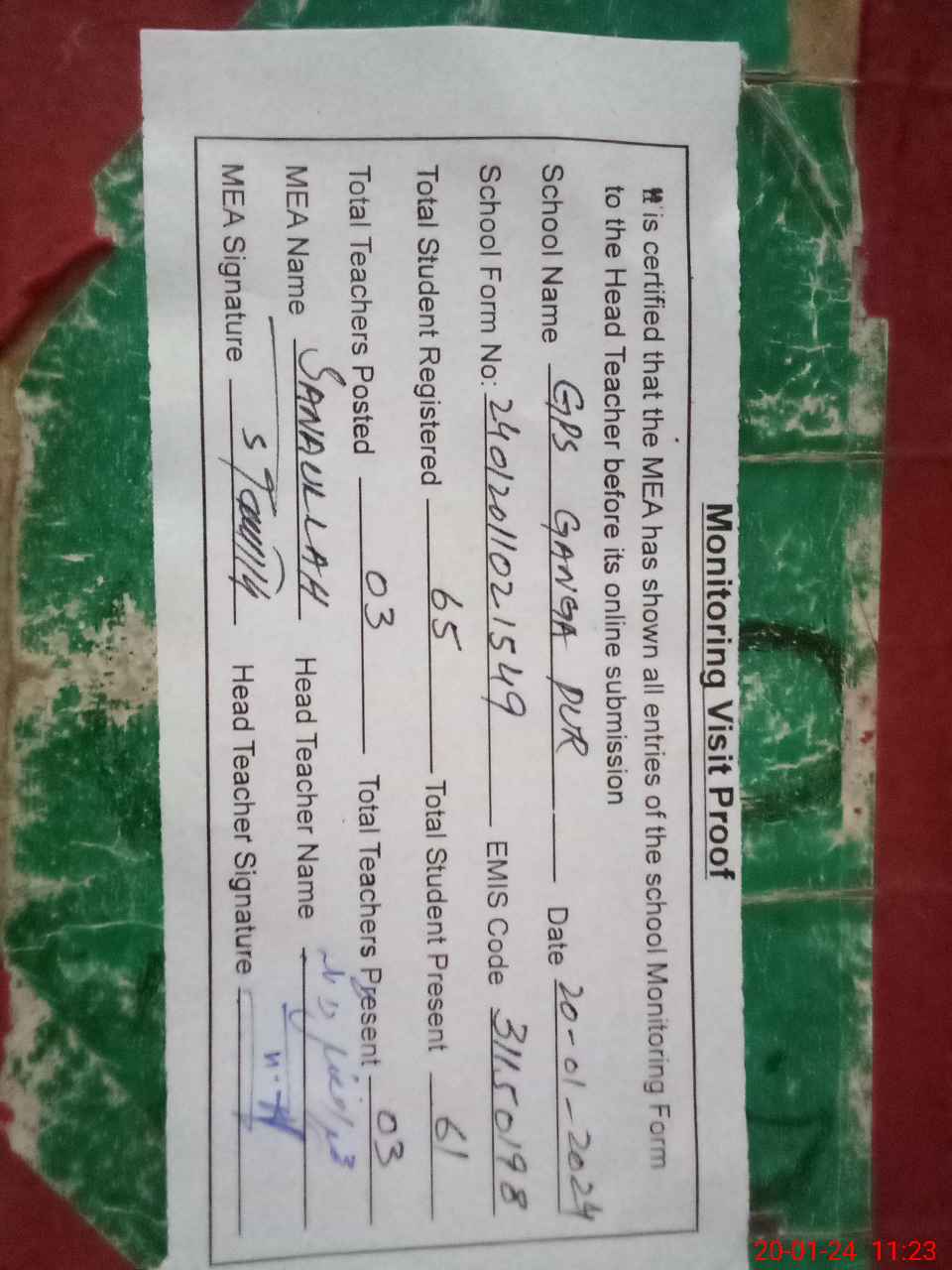 | EMIS Code: 31150198 | Name of School: GPS GANGA PUR | |||