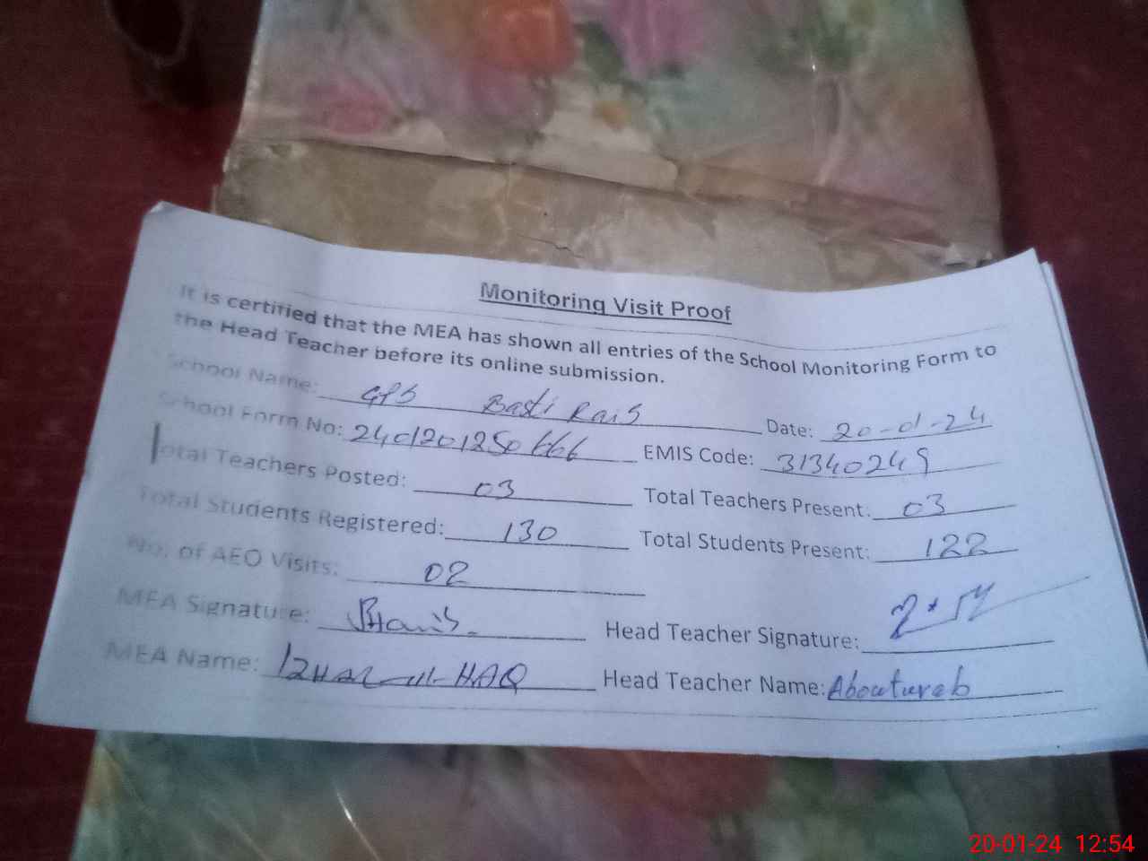 | EMIS Code: 31340249 | Name of School: GPS BASTI RAIS | |||