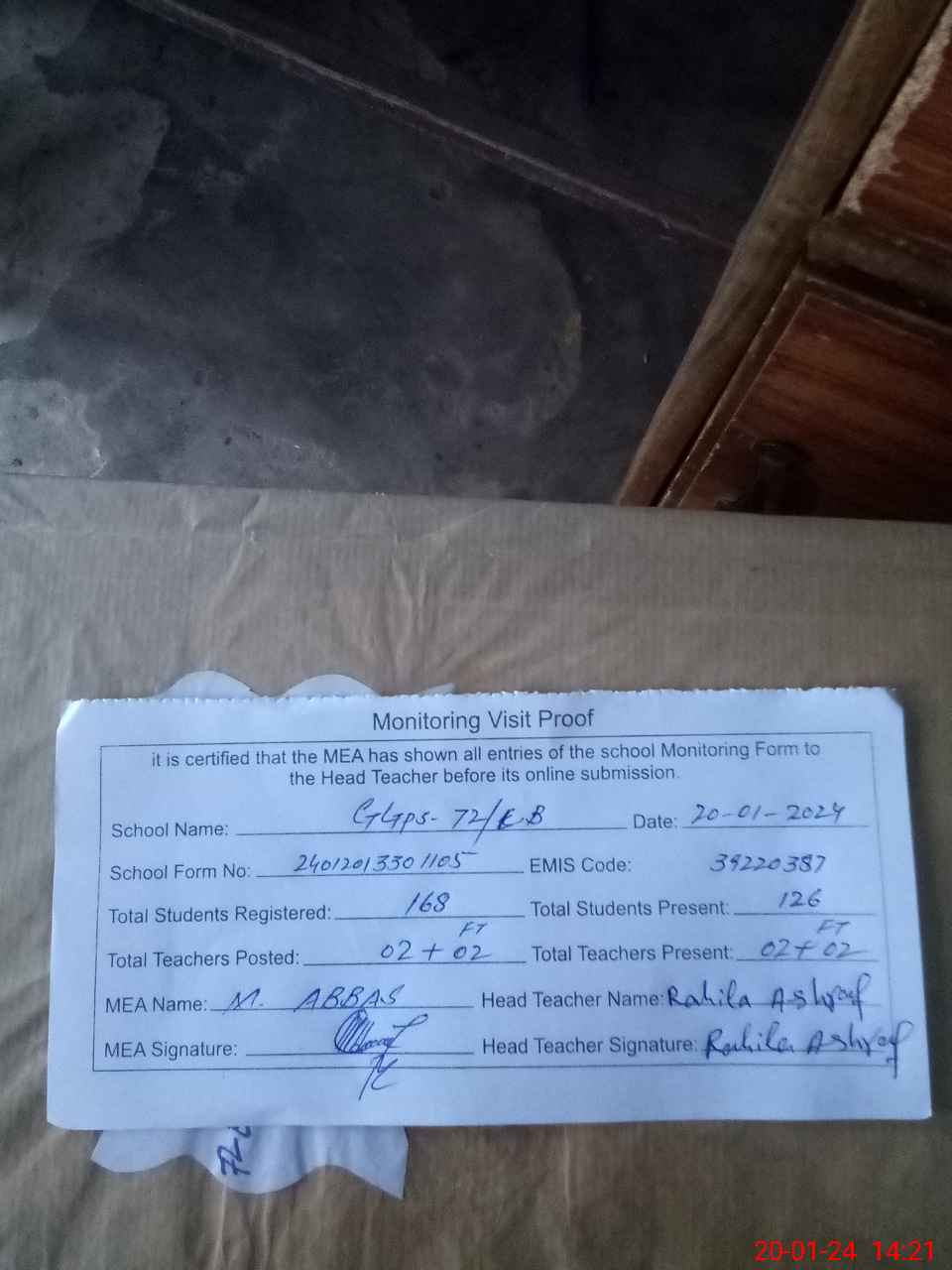 | EMIS Code: 39220387 | Name of School: GGPS 72 EB MUHAMMAD NAGAR ARIFWALA | |||