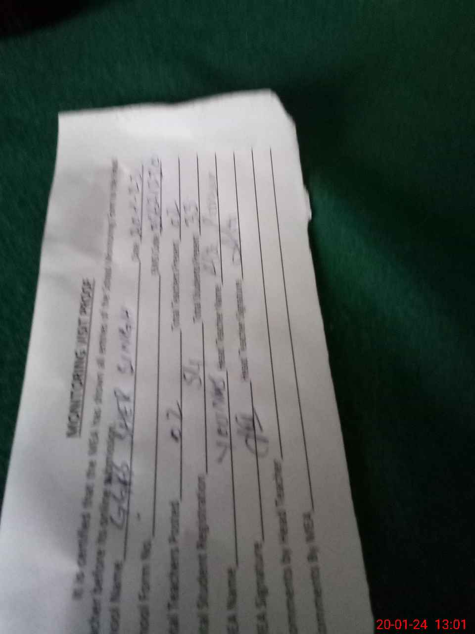 | Monitoring Date: 20-01-2024 | Start Time: 20-01-2024 12:53 PM | End Time: 20-01-2024 01:12 PM | Name of MEA: YO**** AL**** SH**** | |