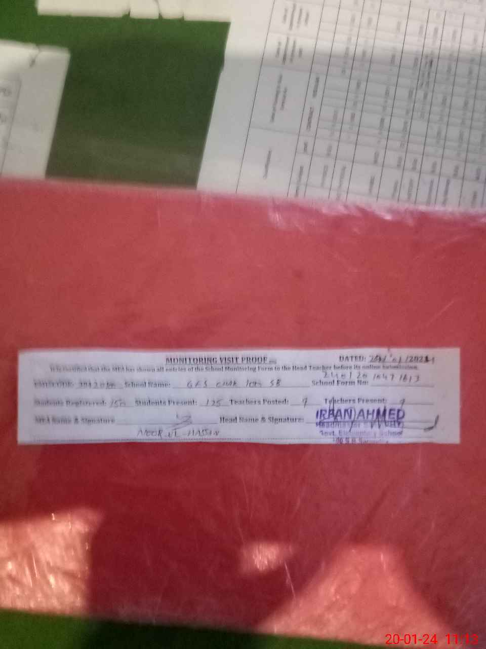 | Attendance Register | Head Teacher | MEA with School | Visit Proof |