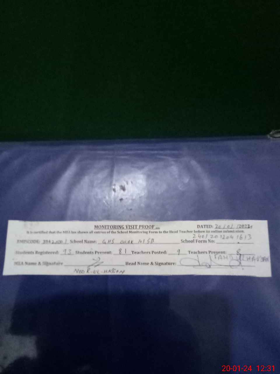 | EMIS Code: 38420001 | Name of School: GHS CHAK NO.101 SB | |||