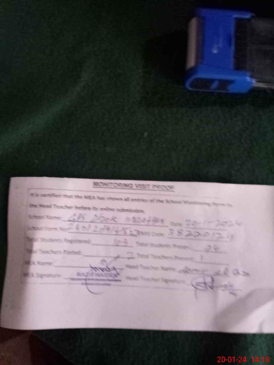 | Attendance Register | Head Teacher | MEA with School | Visit Proof |