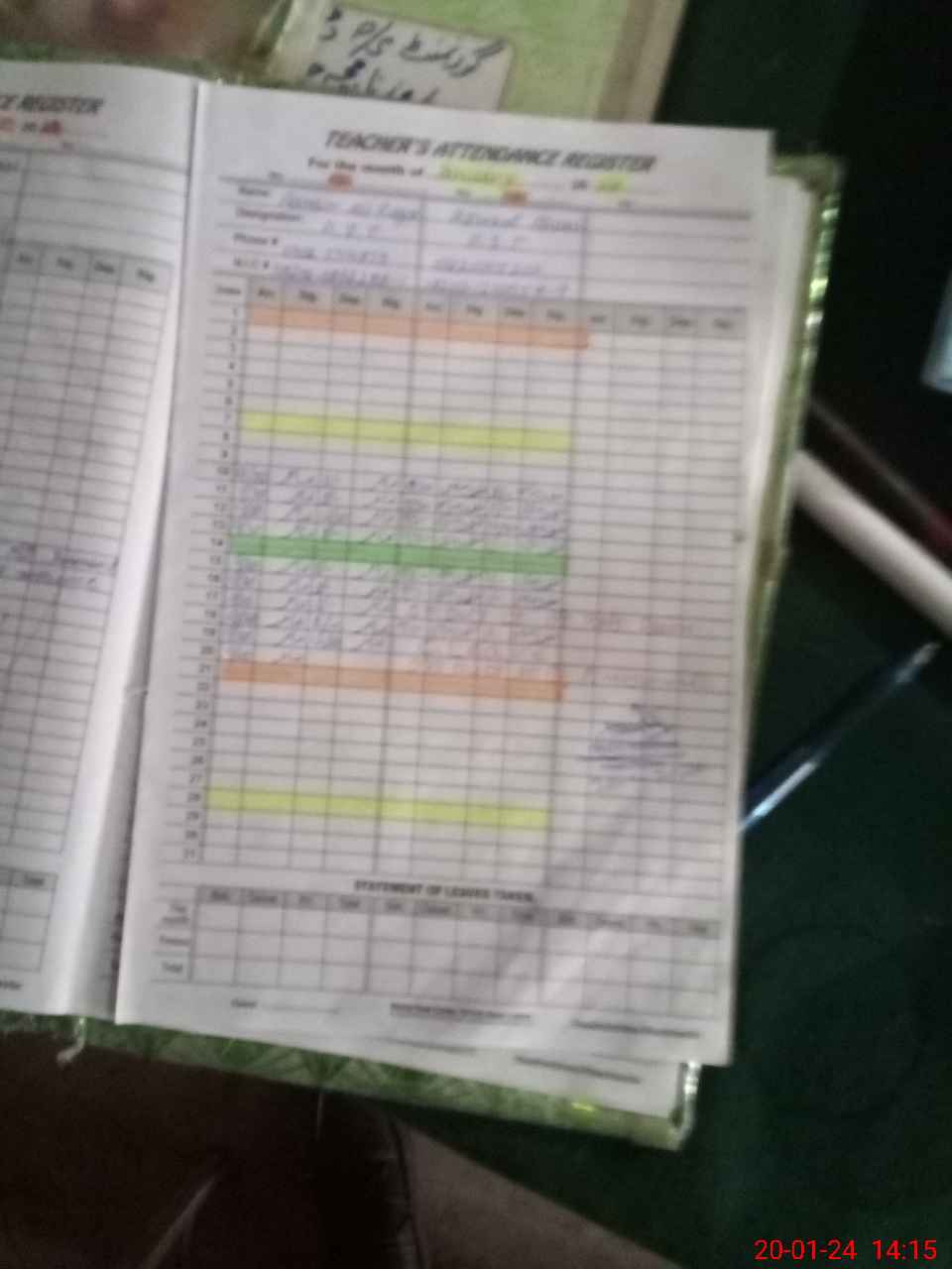 | CNIC | Full Name | Designation | R/C | Absence During Last Calender Month |