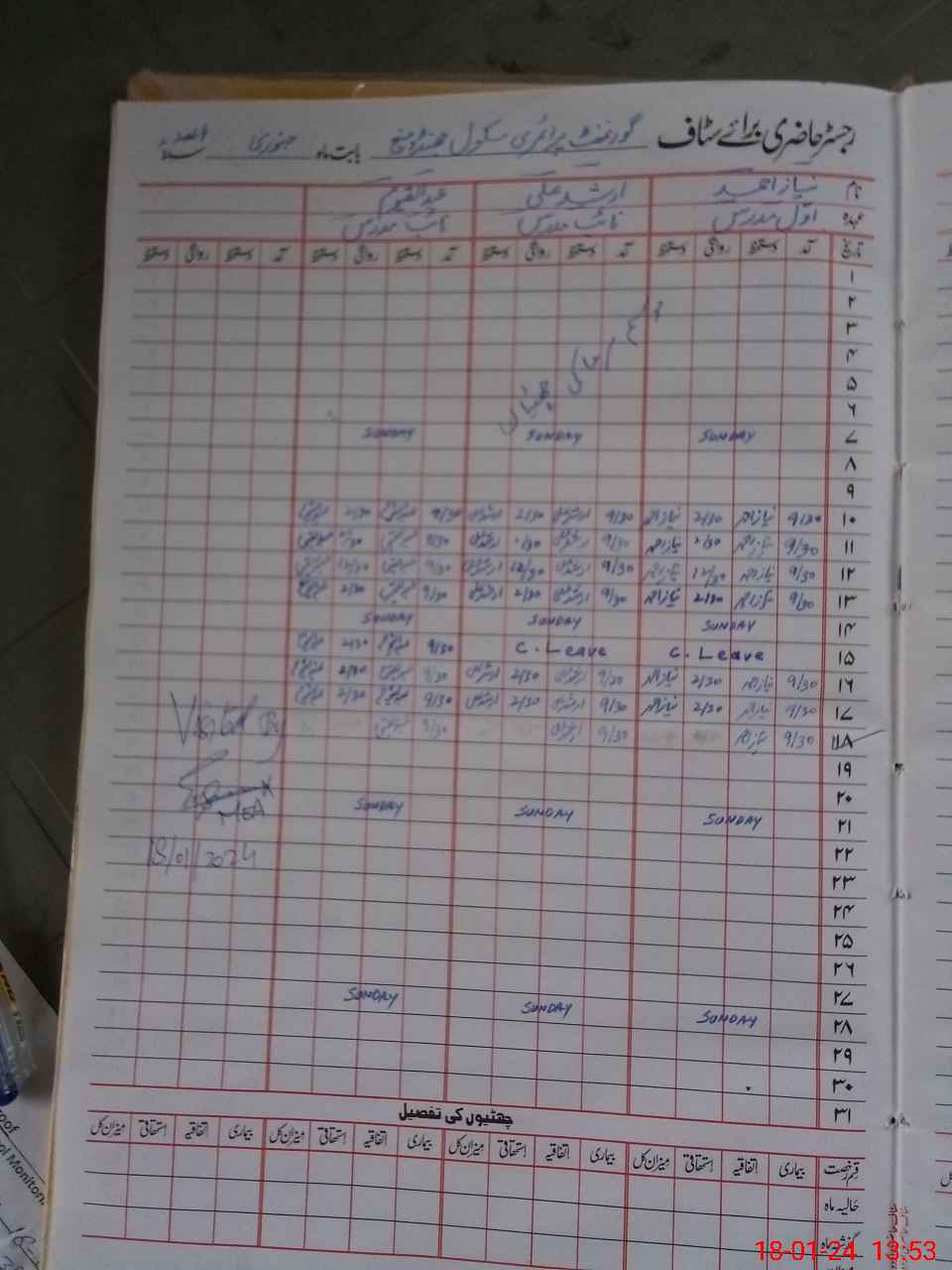 | CNIC | Full Name | Designation | R/C | Absence During Last Calender Month |