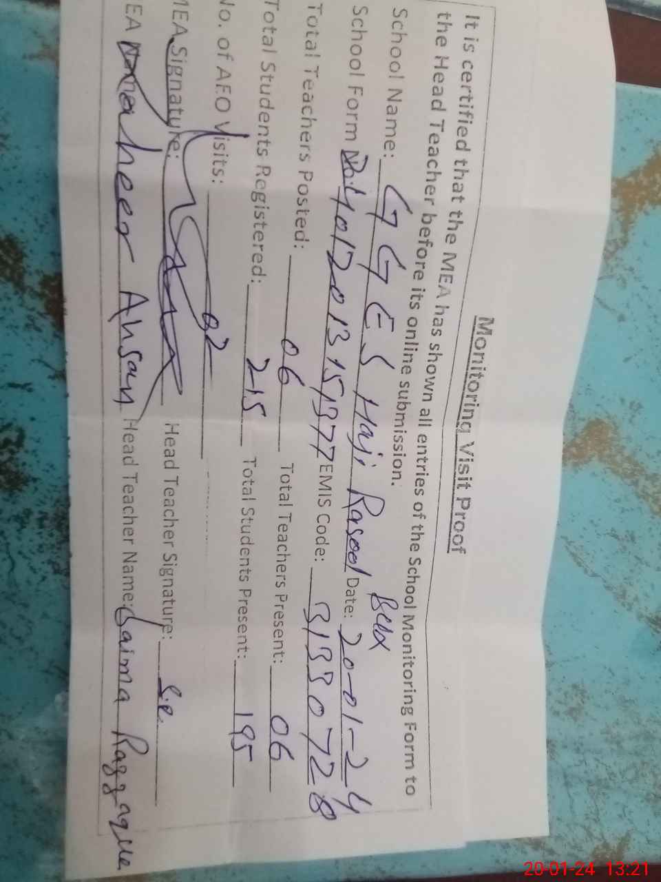 | EMIS Code: 31330728 | Name of School: GGES HAJI RASOOL BAKHSH | |||