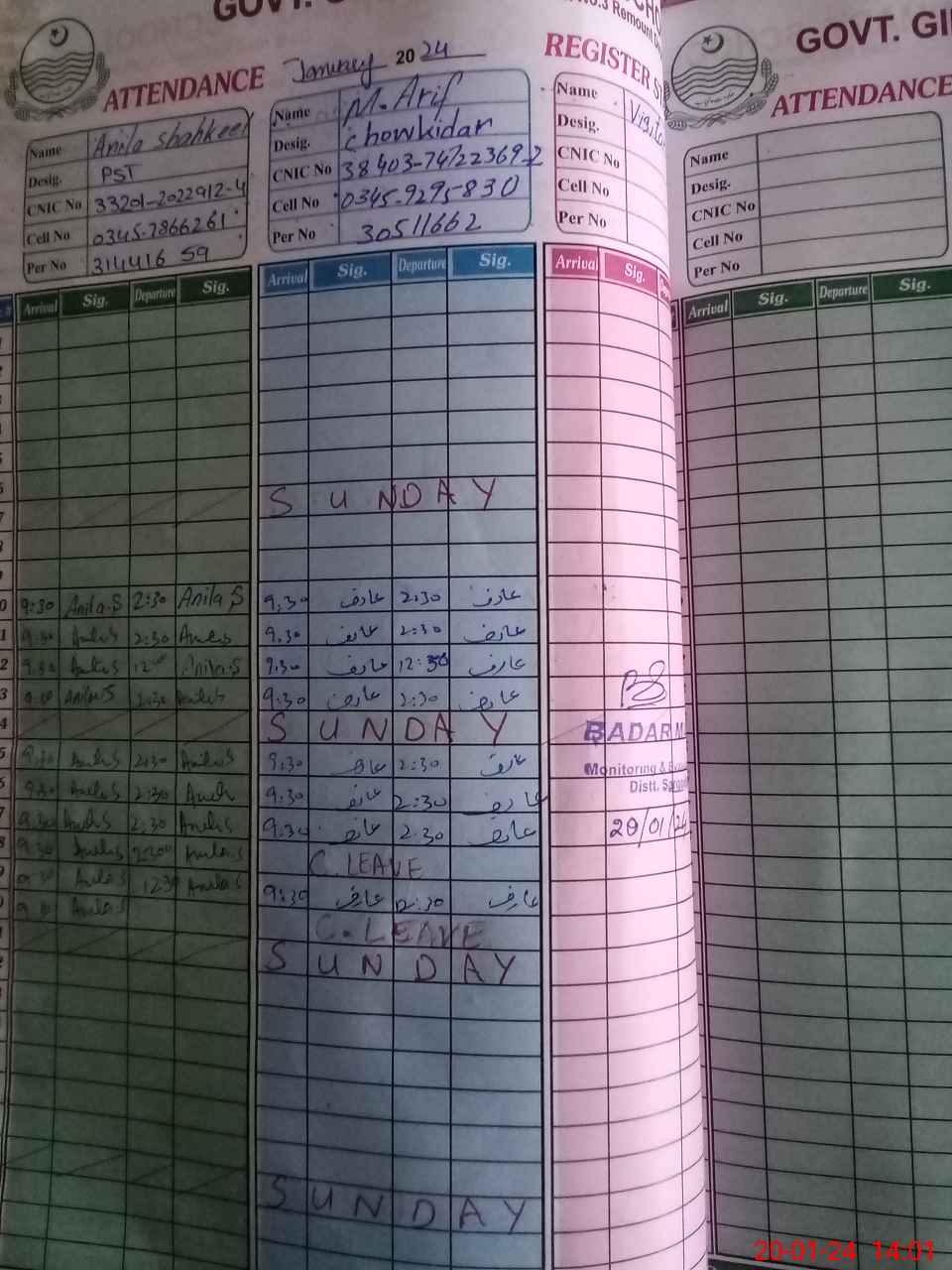 | CNIC | Full Name | Designation | R/C | Absence During Last Calender Month |