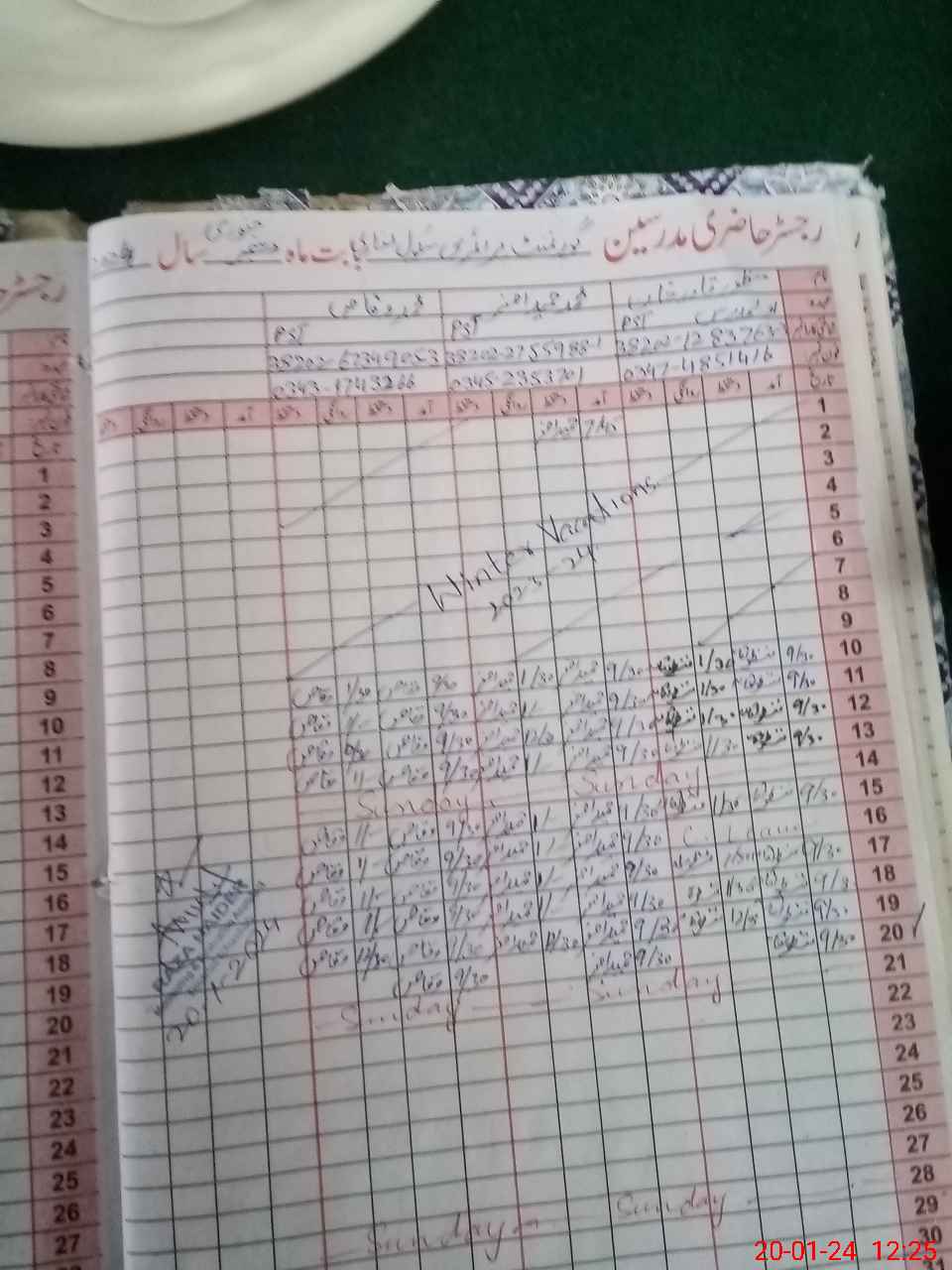 | CNIC | Full Name | Designation | R/C | Absence During Last Calender Month |