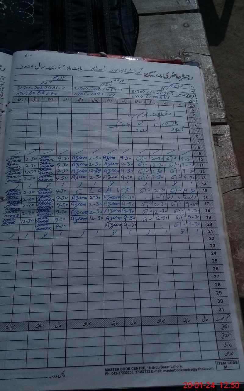 | CNIC | Full Name | Designation | R/C | Absence During Last Calender Month |