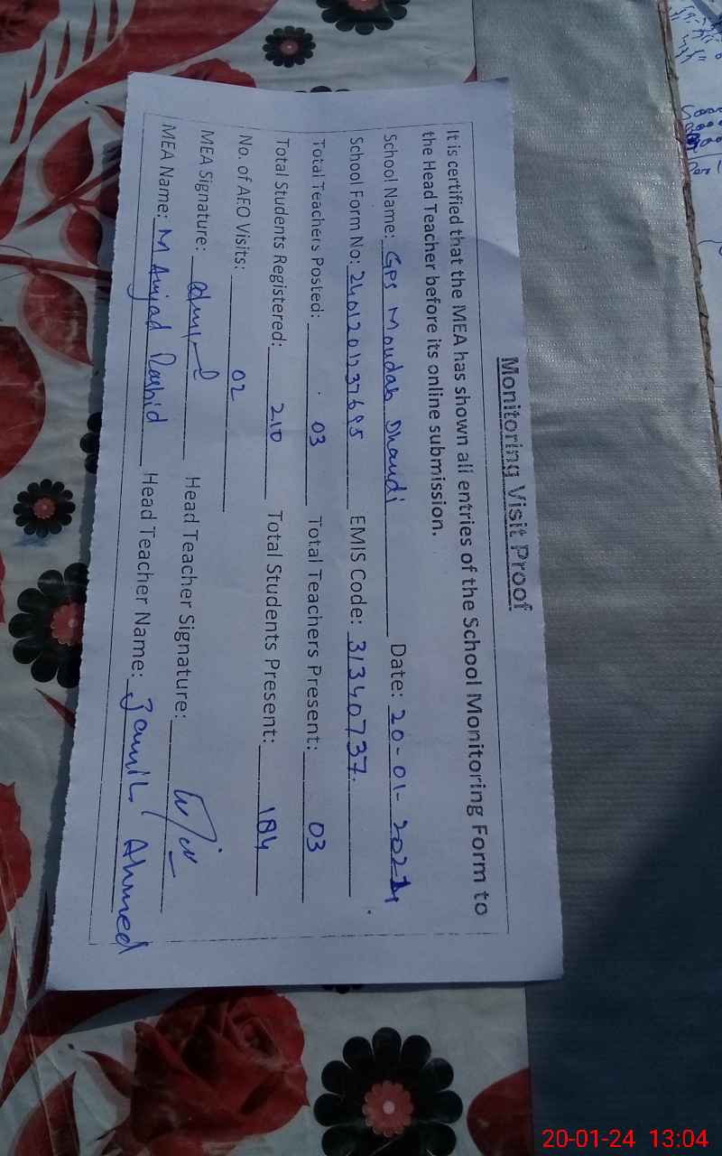 | EMIS Code: 31340737 | Name of School: GPS MOUDAB BASTI DHUNDI | |||
