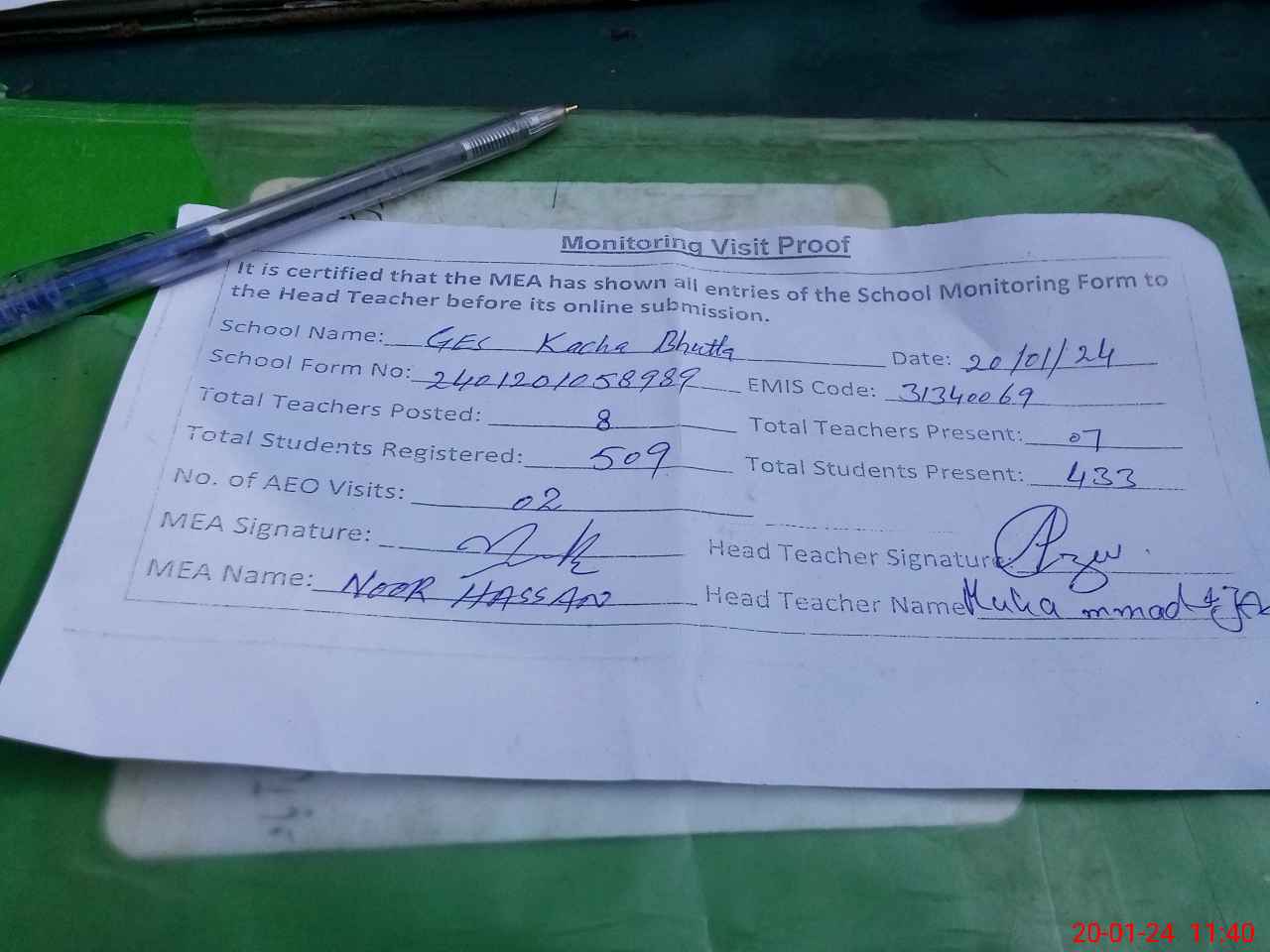 | EMIS Code: 31340069 | Name of School: GES KACHA BHUTTA | |||