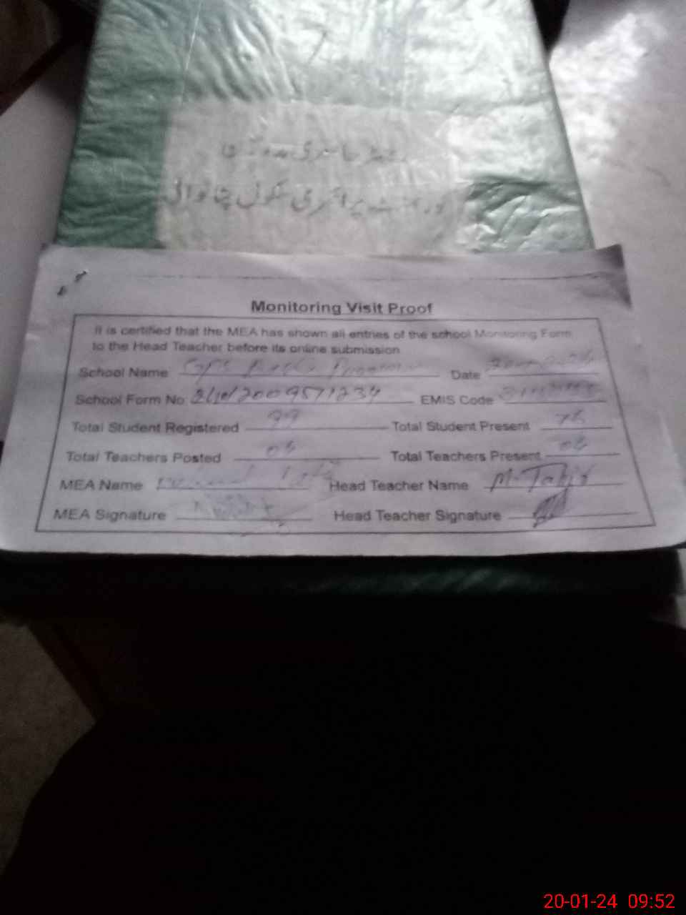 | Attendance Register | Head Teacher | MEA with School | Visit Proof |