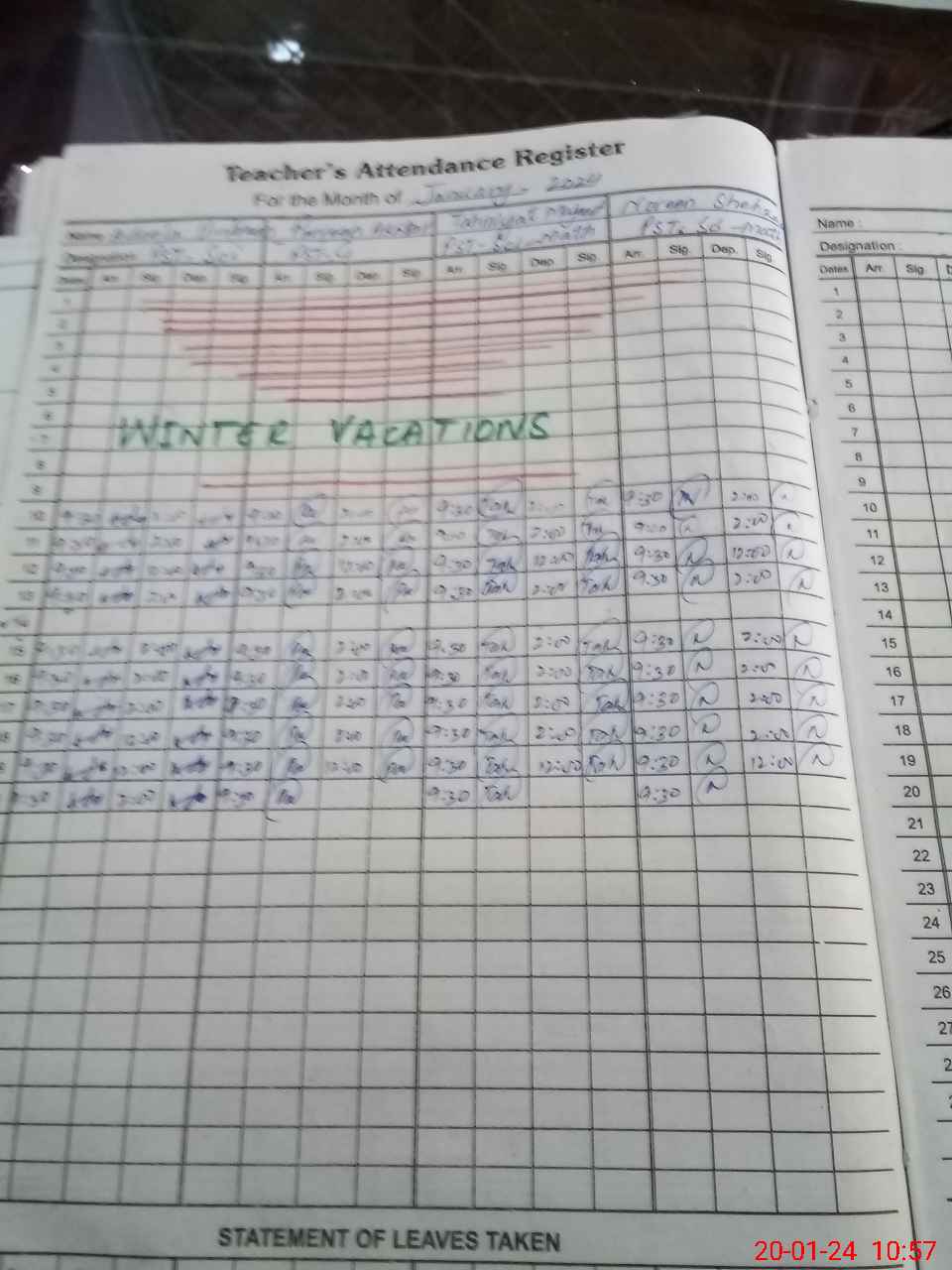 | Leave | Duty | Absent | Maternity | Medical | Ex- Pak |