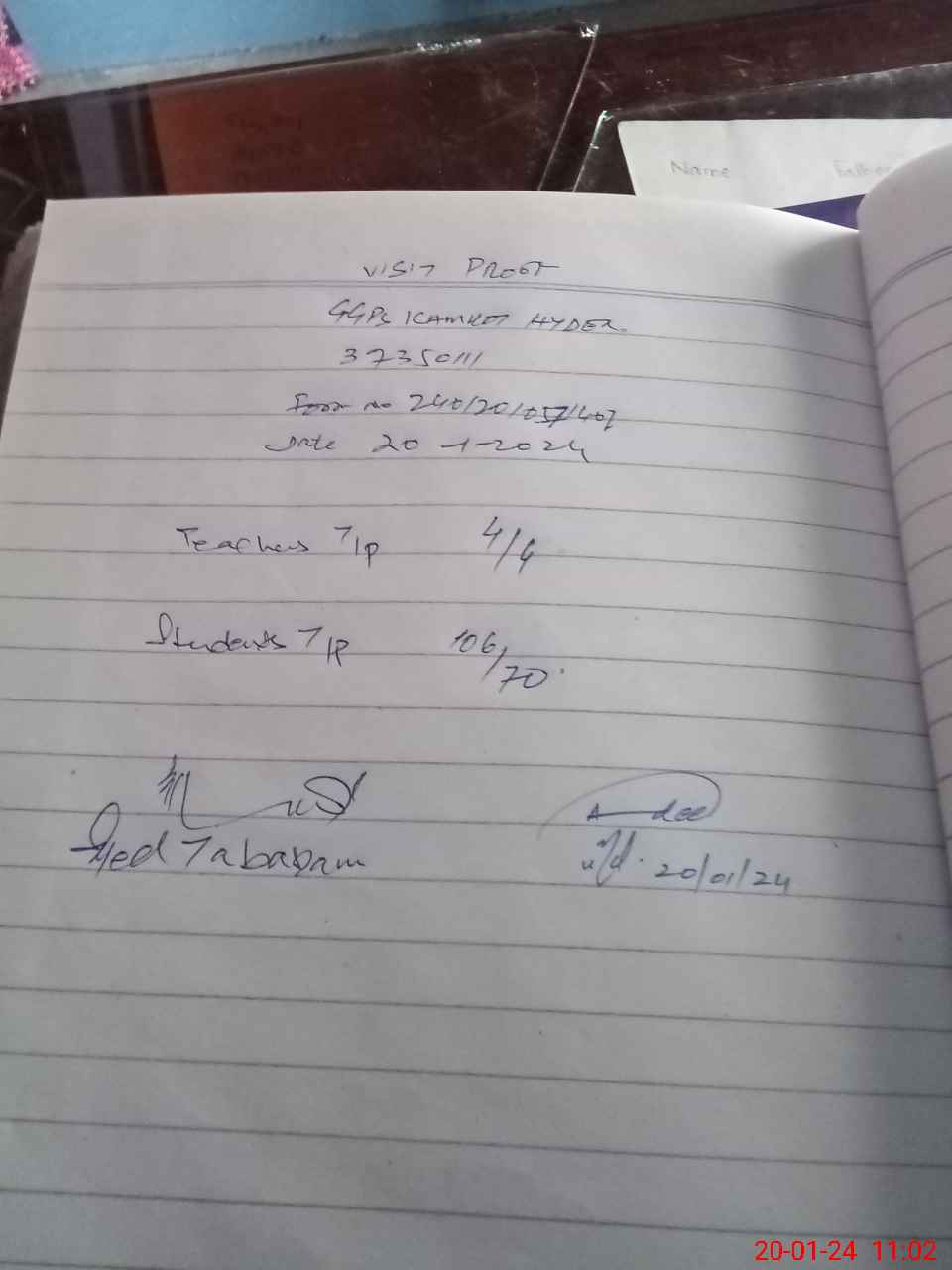 | Attendance Register | Head Teacher | MEA with School | Visit Proof |