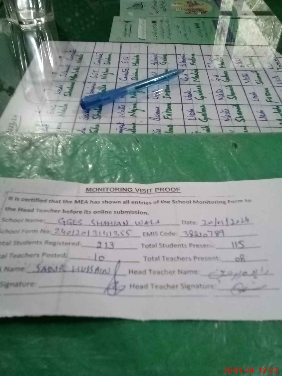 | Attendance Register | Head Teacher | MEA with School | Visit Proof |