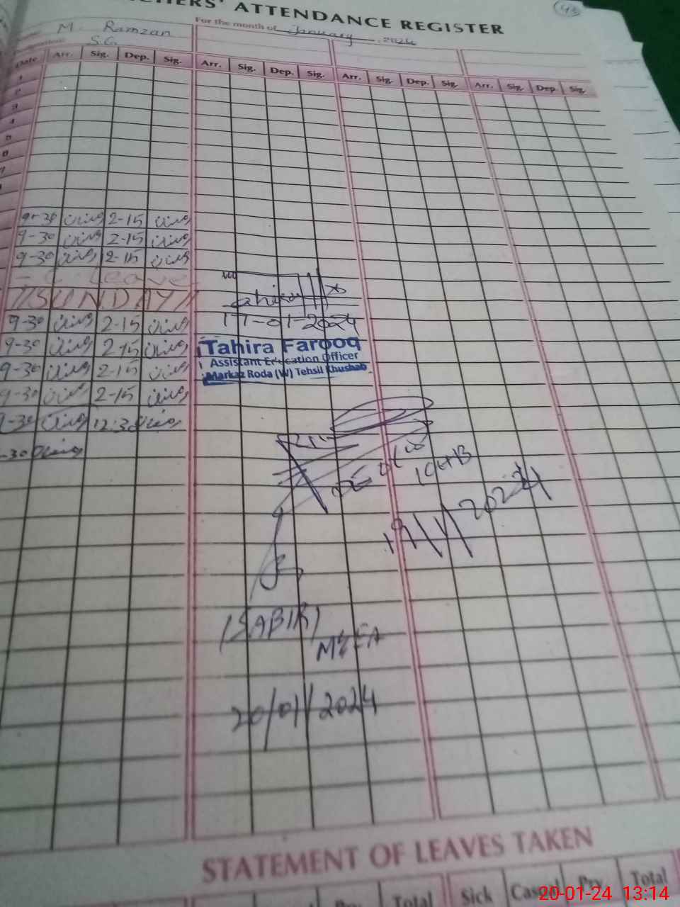 | CNIC | Full Name | Designation | R/C | Absence during last cal. month |