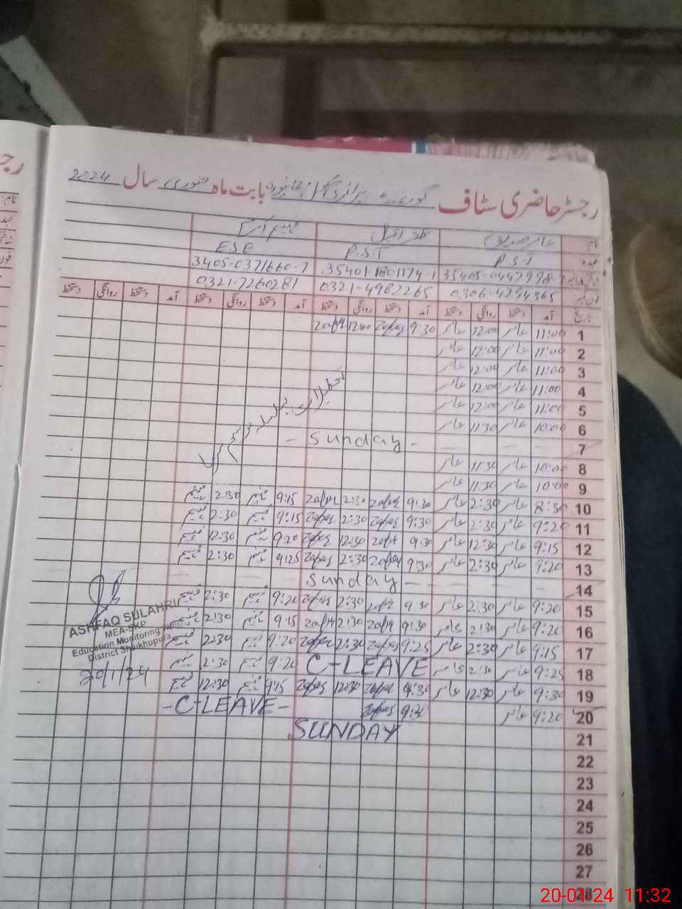 | CNIC | Full Name | Designation | R/C | Absence during last cal. month |