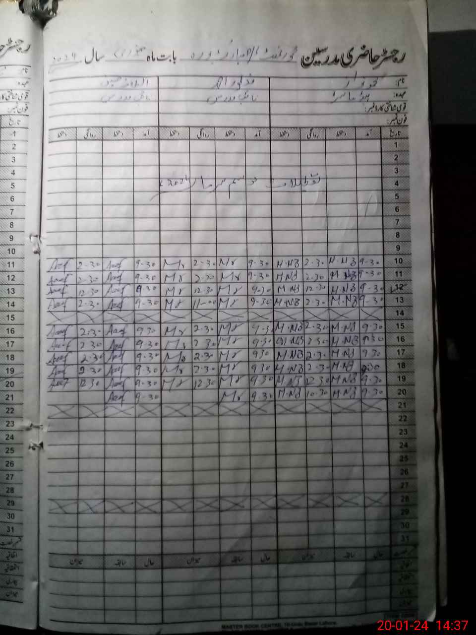 | CNIC | Full Name | Designation | R/C | Absence During Last Calender Month |