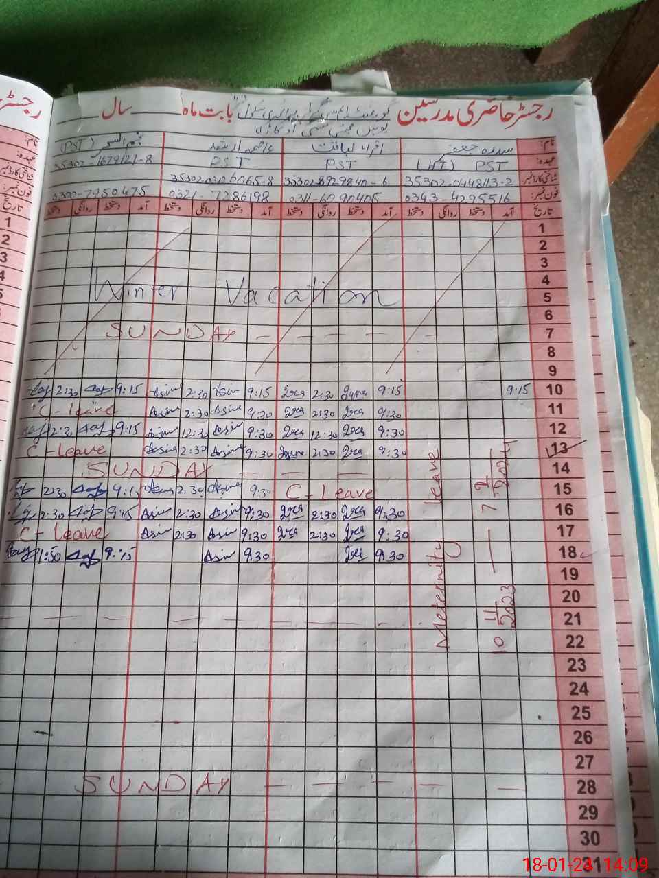 | Leave | Duty | Absent | Maternity | Medical | Ex- Pak |