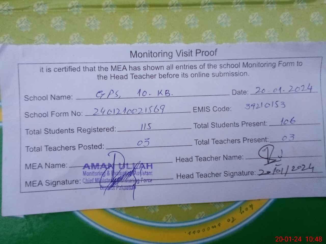 | EMIS Code: 39210153 | Name of School: GPS 10 KB | |||