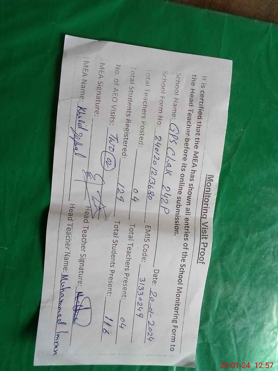 | EMIS Code: 31330249 | Name of School: GPS CHAK 242/P | |||