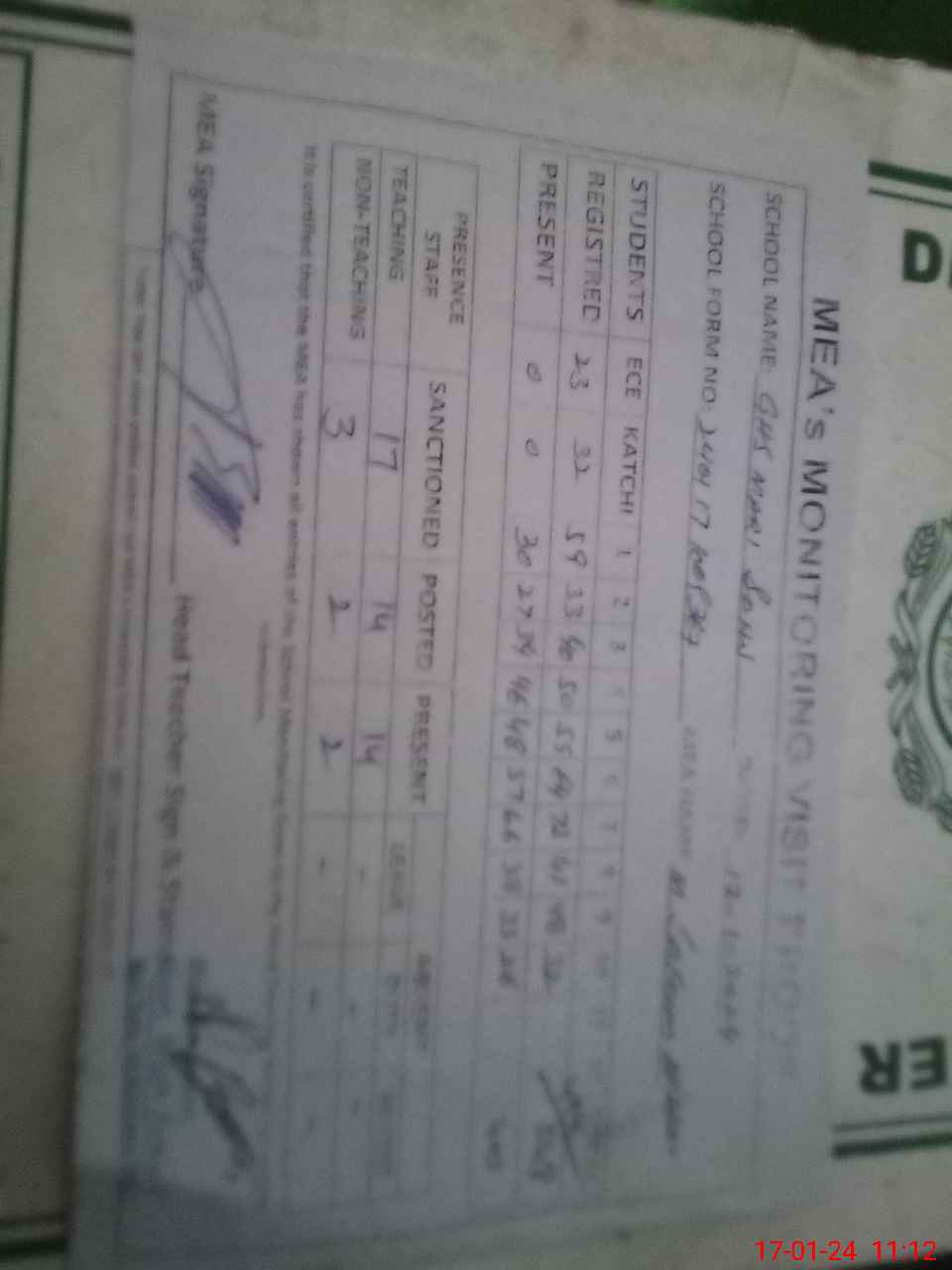 | Attendance Register | Head Teacher | MEA with School | Visit Proof |