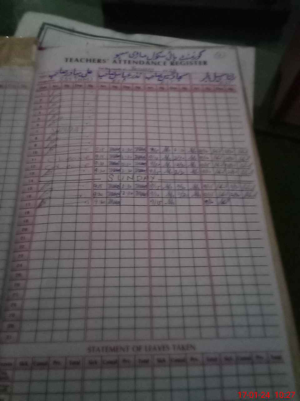 | CNIC | Full Name | Designation | R/C | Absence During Last Calender Month |