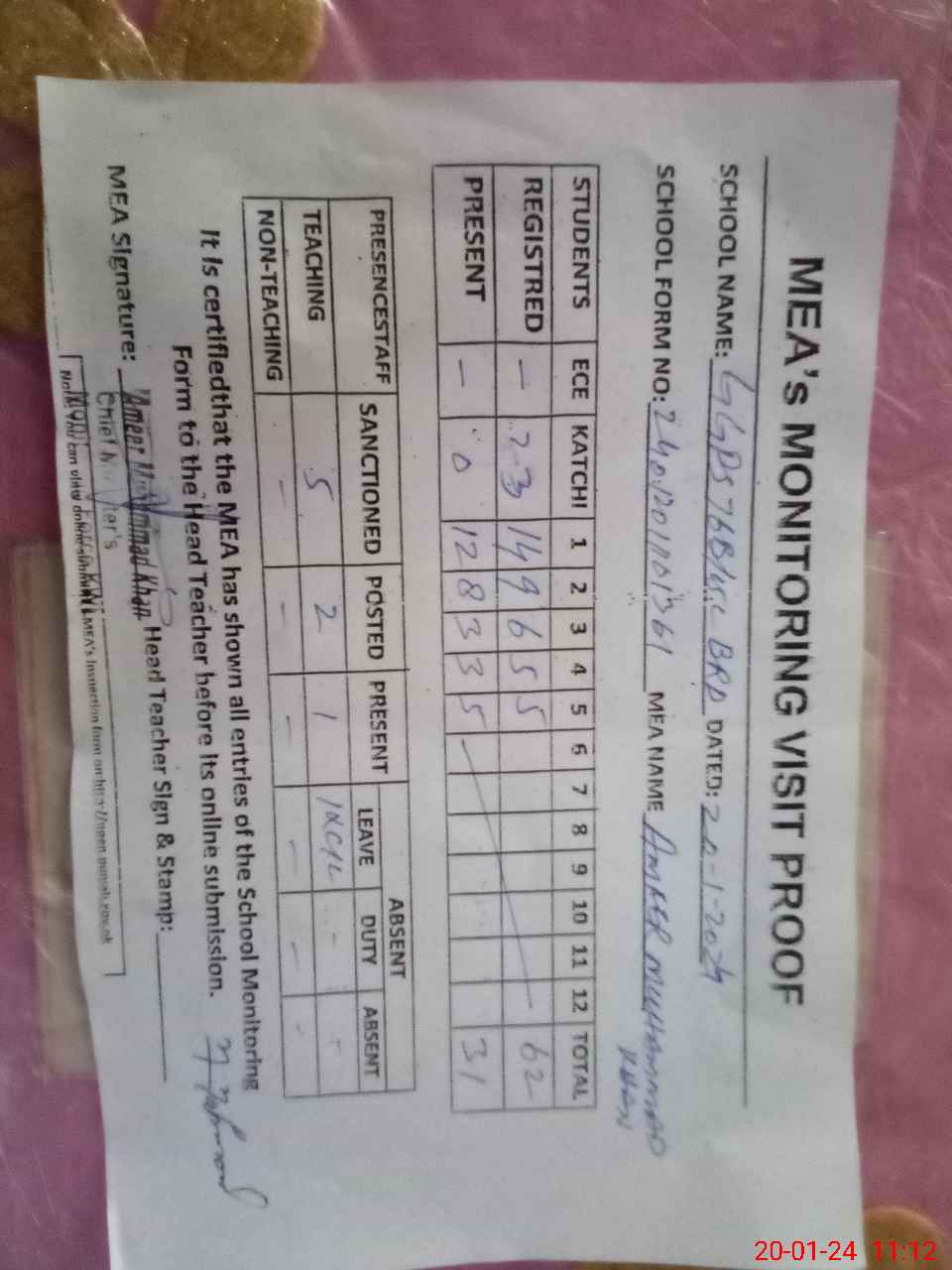 | EMIS Code: 36420643 | Name of School: GGPS 76-B/15-L BHENI ROSHAN DIN | |||