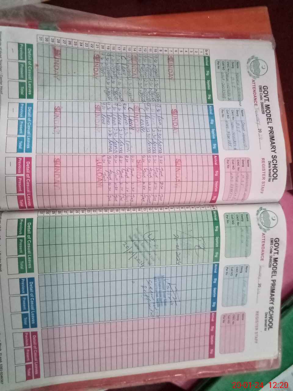 | CNIC | Full Name | Designation | R/C | Absence During Last Calender Month |