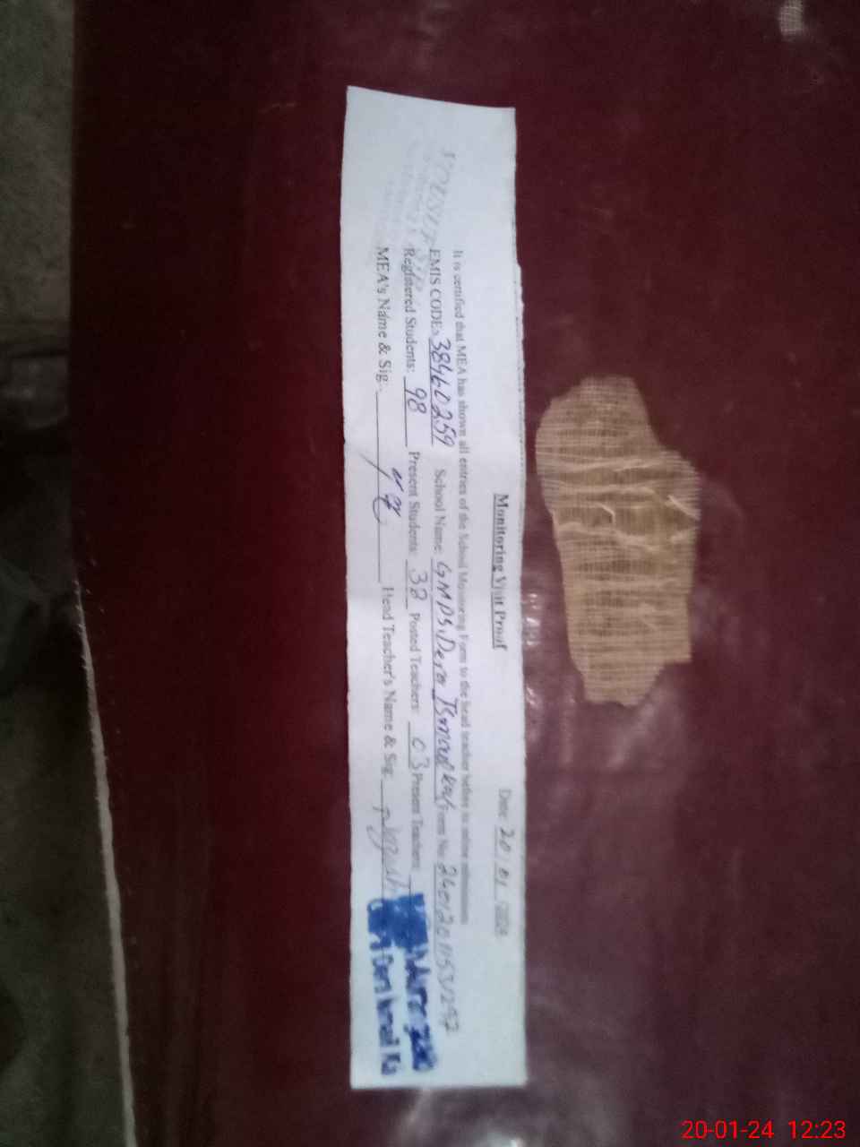 | Attendance Register | Head Teacher | MEA with School | Visit Proof |